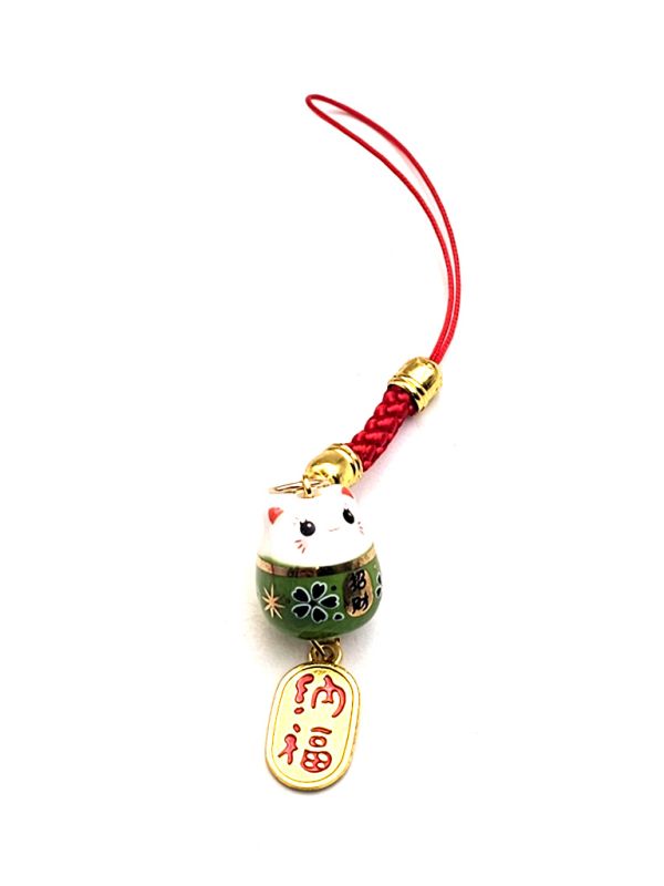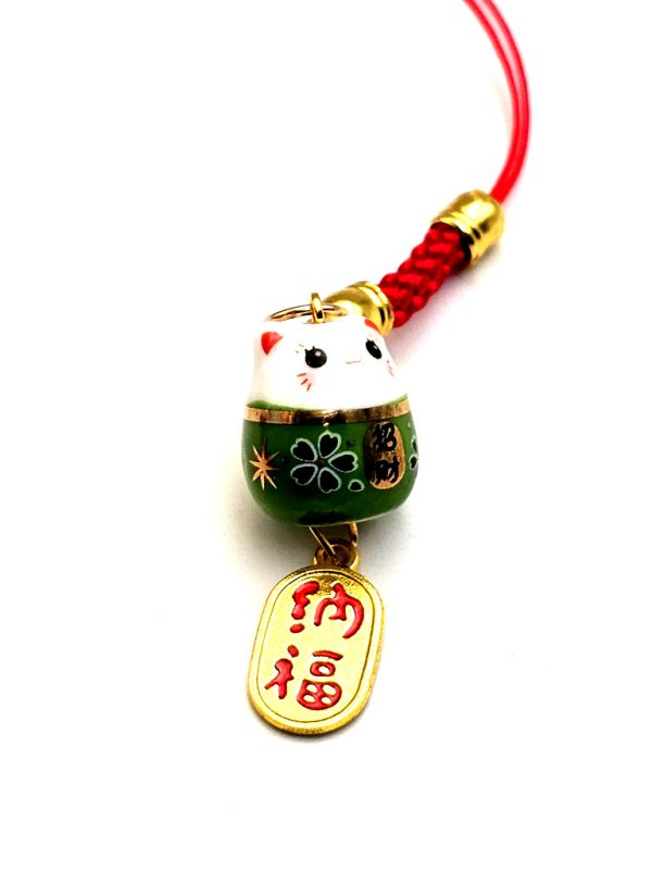 Amulette Japonaise Maneki-neko - Porte-bonheur à suspendre - Vert: Santé et équilibre