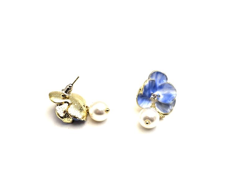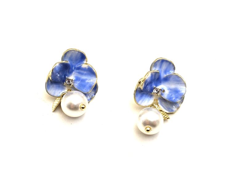 Boucles d’oreilles chinoises cloisonnées – Orchidées bleues et perles