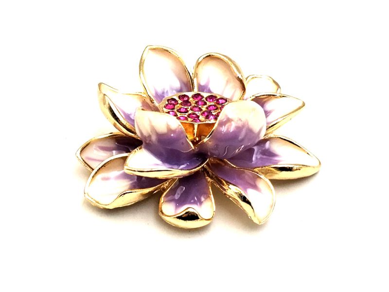 Broche chinoise en émail - Cloisonnée - Fleur de lotus symbole de puretév