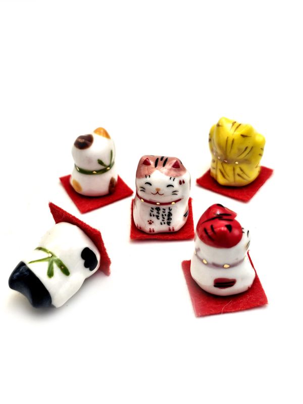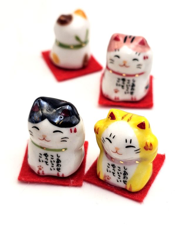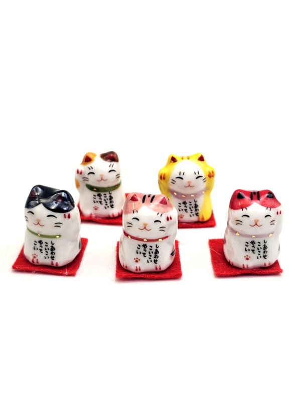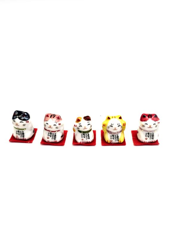 Lot de 5 Mini Maneki-neko Japonais - Chats Porte-Bonheur en Céramique